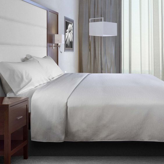 The Lencois decorative top sheet features a puff jacquard design that resists wrinkles and provides a beautiful, crisp solution for your guests. Made of 100% polyester, this top sheet is durable and operationally friendly.